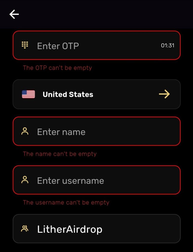 Enter Email Id and enter the OTP, you will be prompted to enter a referral code. To proceed, input the referral code “LitherAirdrop” in the designated field.
